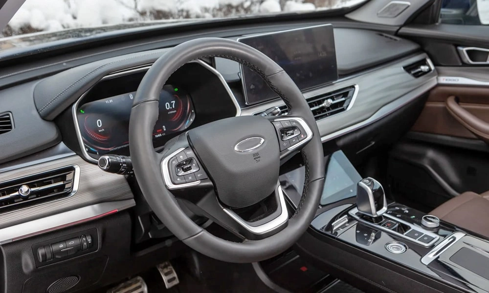 • Отделка интерьера и сидений экокожей чёрно-коричневого цвета